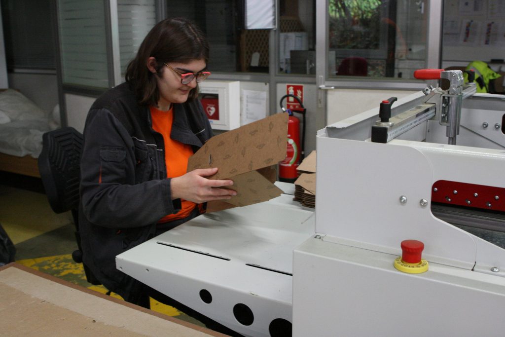 Dans un vaste atelier de 2 300 m², aux équipements modernes, situé rue Sarrault, le secteur cartonnage emploie 35 personnes handicapées.